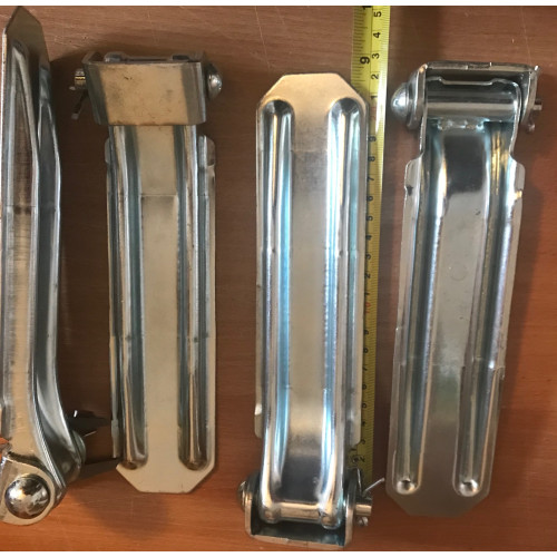 Beschreibung: außenliegende Bordwandklappen die passenden Komplett-Scharniere, verzinkt, für Aluminium Bordwände mit 25mm und 30mm Bordwandstärke, die Scharniere werden auf die Bordwand von außen genietet oder wahlweise geschraubt. Die benötigte Bohrlöcher zur Befestigung können von Ihnen selbst gewählt/gebohrt werden und sind nicht vorgegeben.