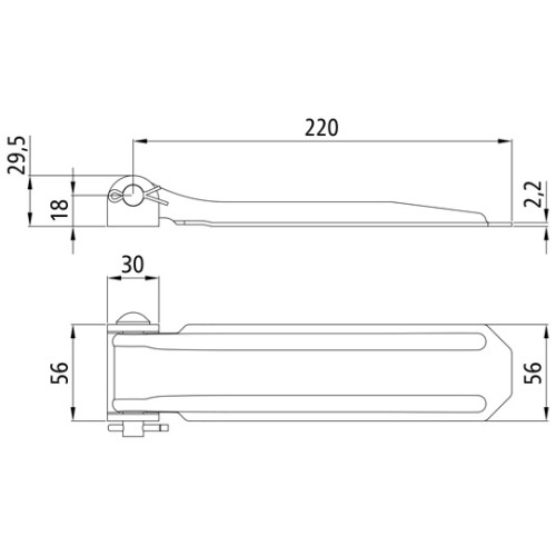 Klappenscharnier, Nennlänge 220mm, 0,48kg, leichte Ausführung inkl. Scharnierbock und Zubehör