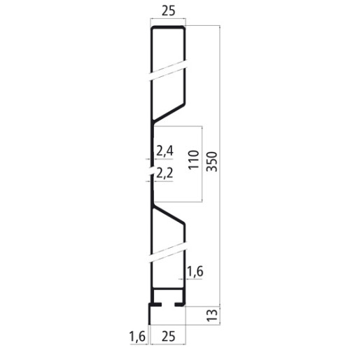 Aluminium-Bordwandprofil Höhe 35cm - 2,5cm stark - eloxiert, mit Planmulde, mit Nase und mit Kammer für Gewindeschienen unten