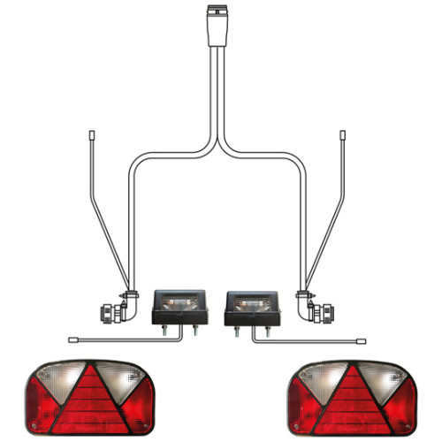 Zu Rückleuchte links 1400 mm, zu Rückleuchte rechts 1400 mm, Kabellänge DC-System 500 mm, Kabellänge Kennzeichenleuchten 800 mm.